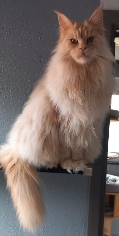 Couleur : Red Solide Mâle Réside à Arlon Couleur : Crême Blotched Tabby Mâle Reste à la chatterie |