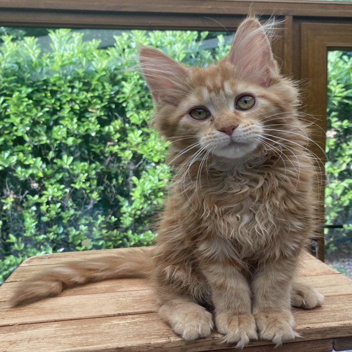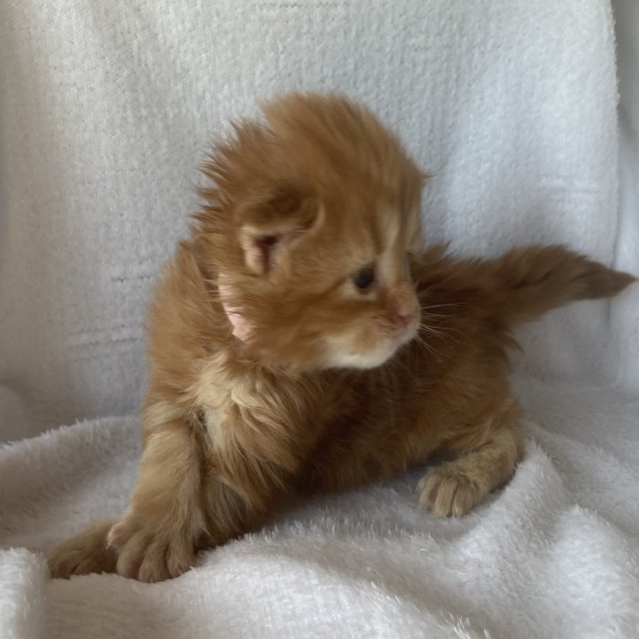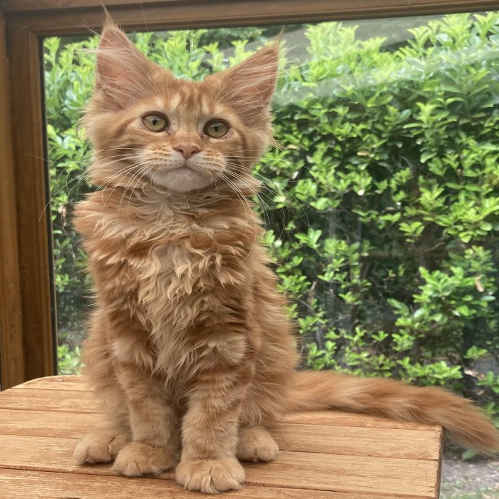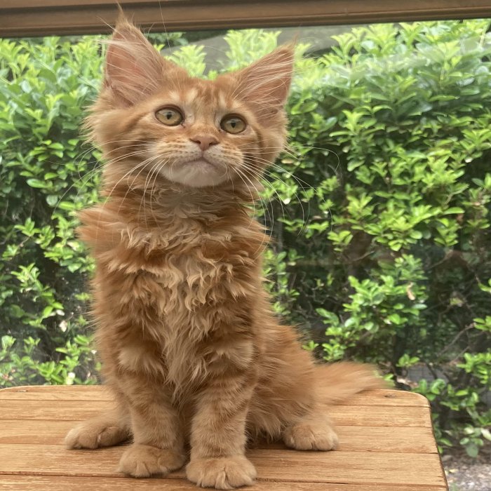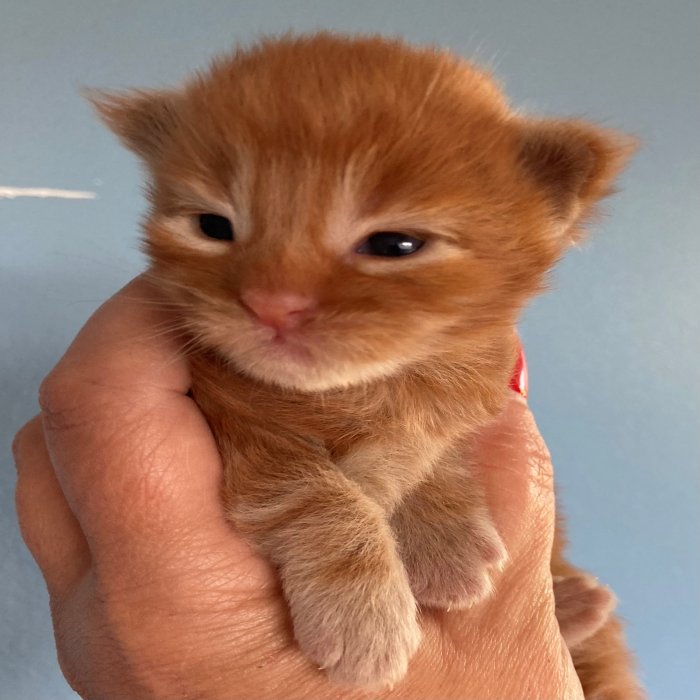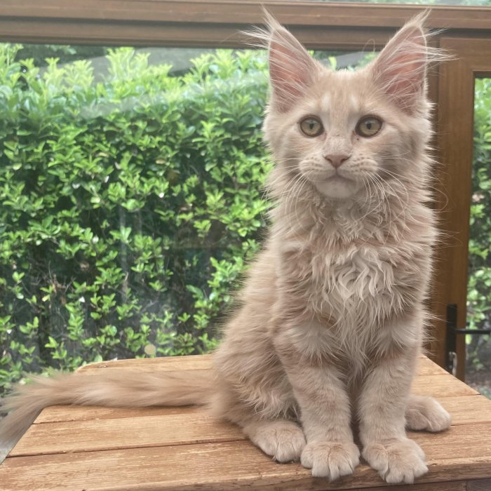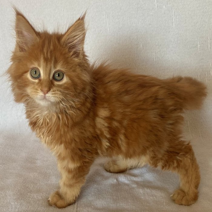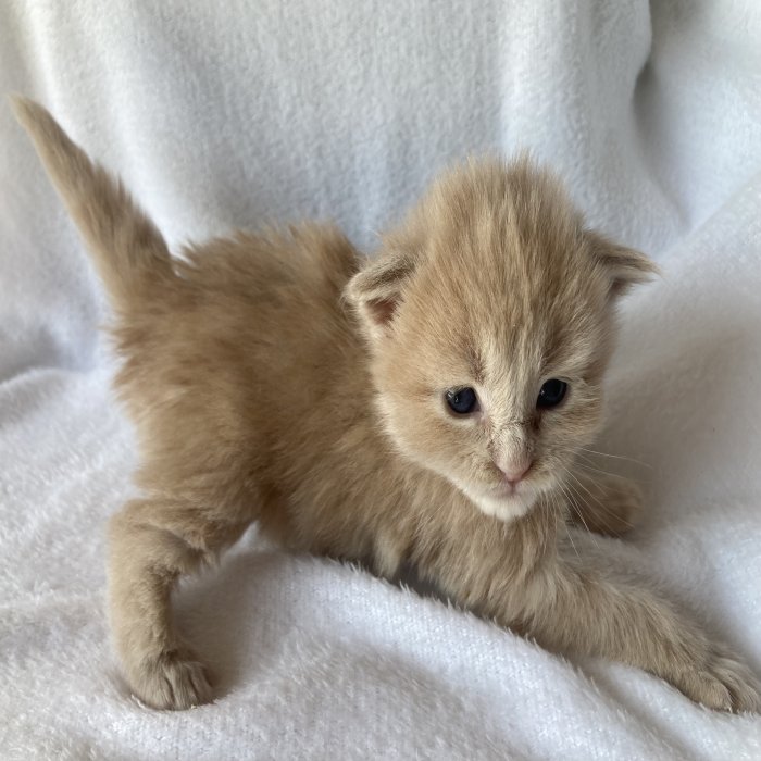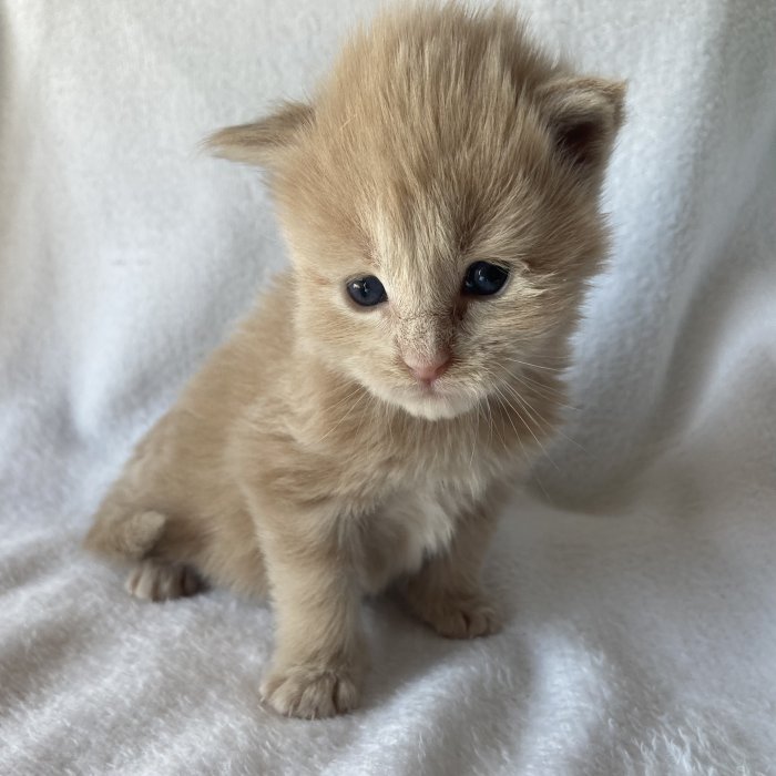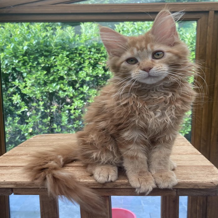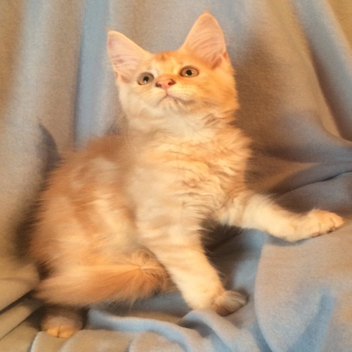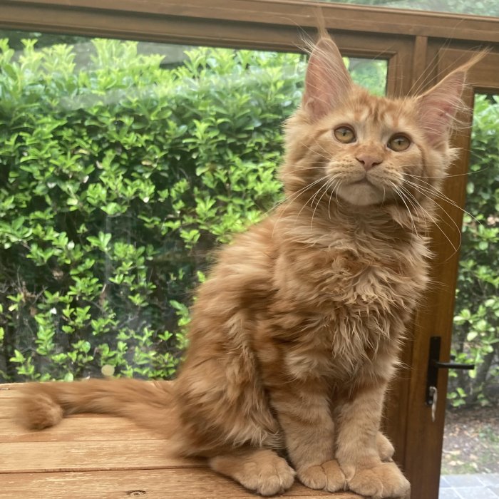 Couleur : Red Solide Mâle Réside à Arlon Couleur : Crême Blotched Tabby Mâle Reste à la chatterie |