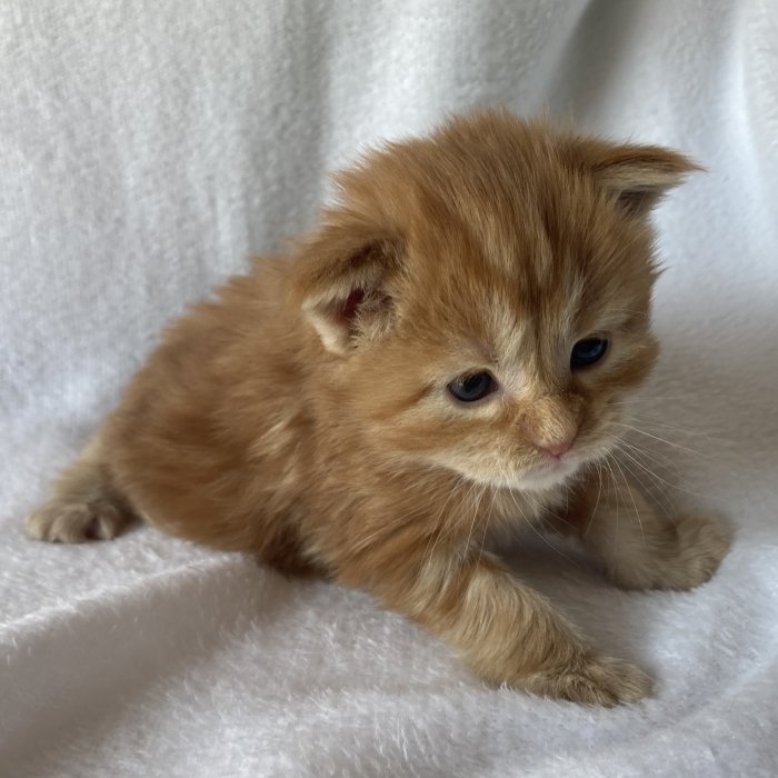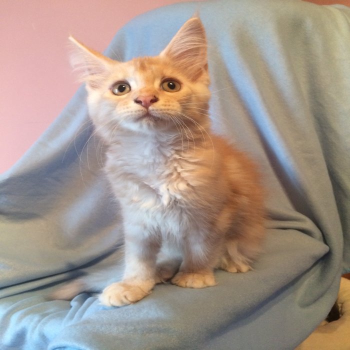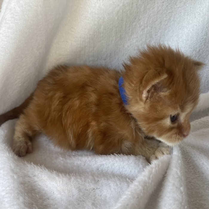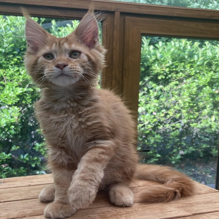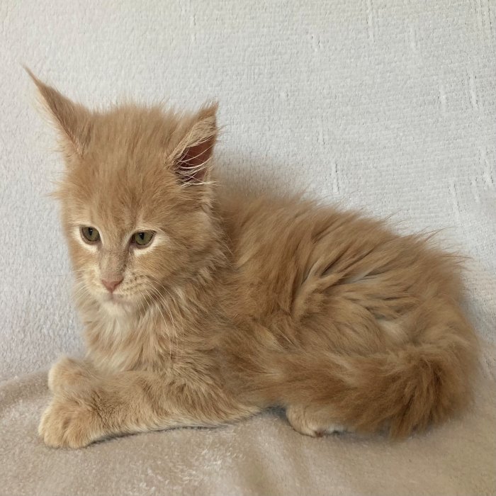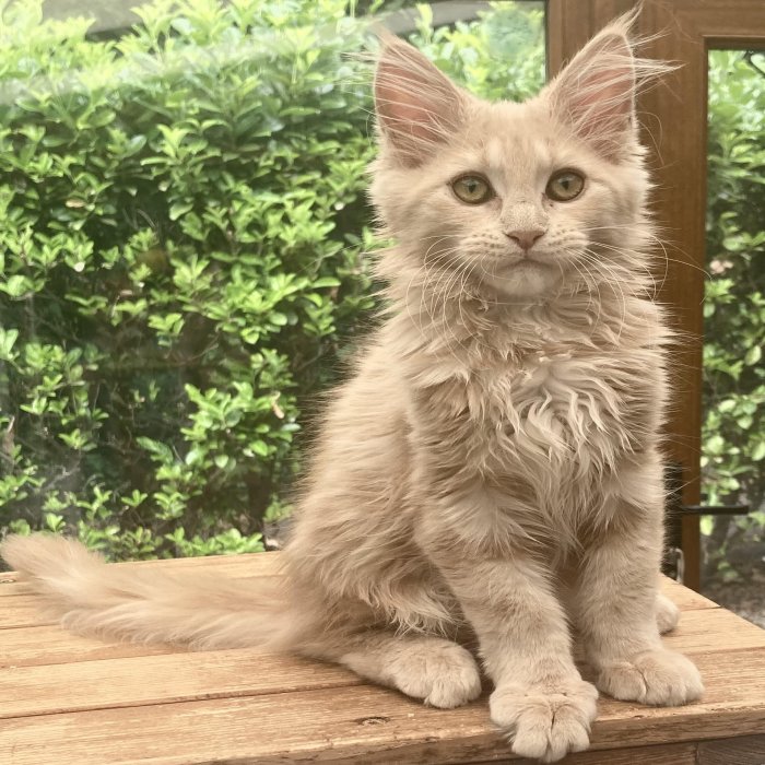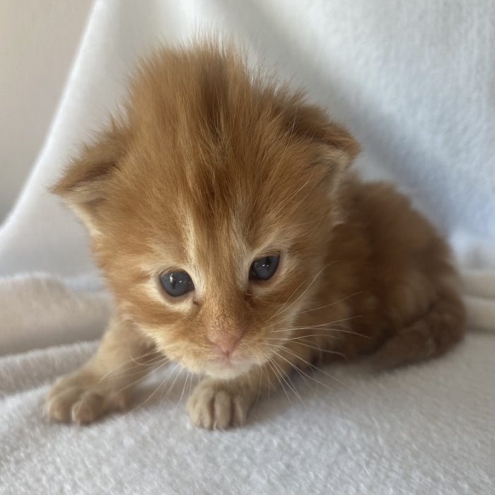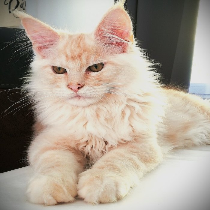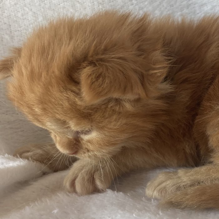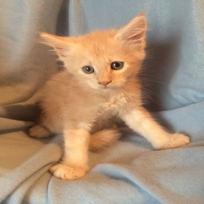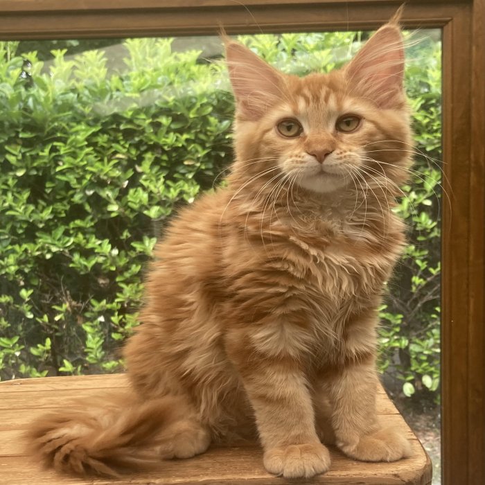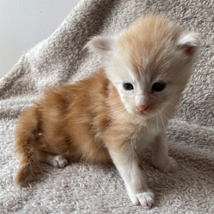 Couleur : Red Solide Mâle Réside à Arlon Couleur : Crême Blotched Tabby Mâle Reste à la chatterie |