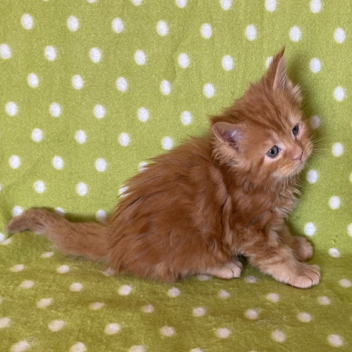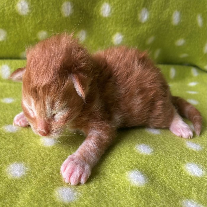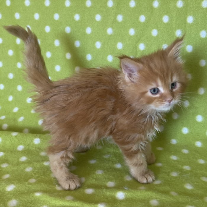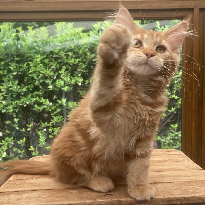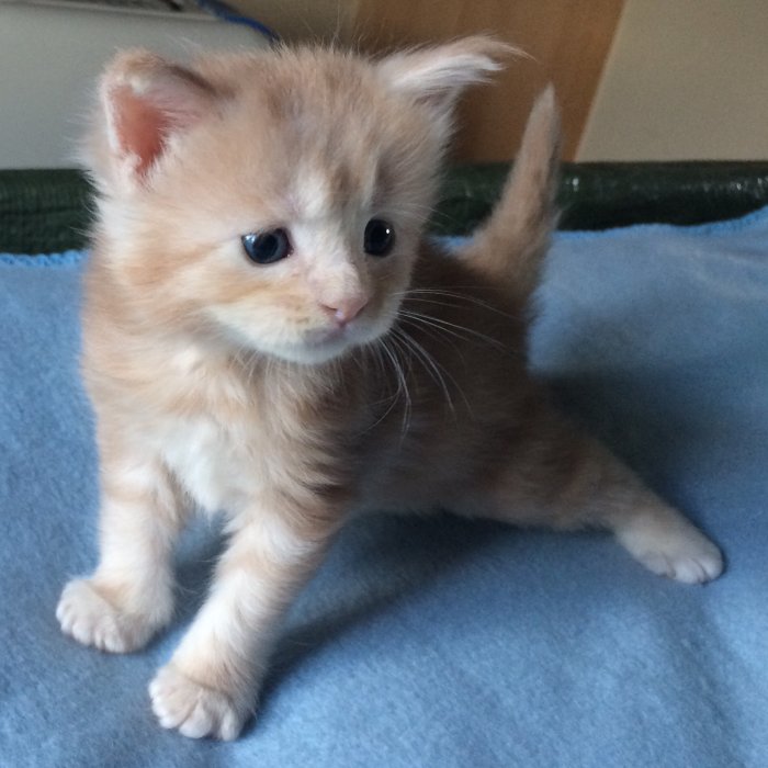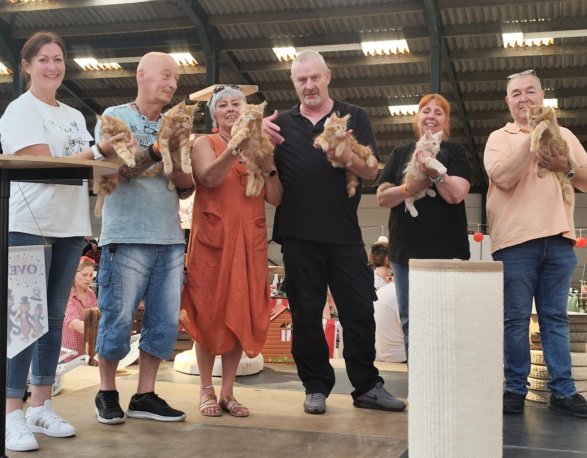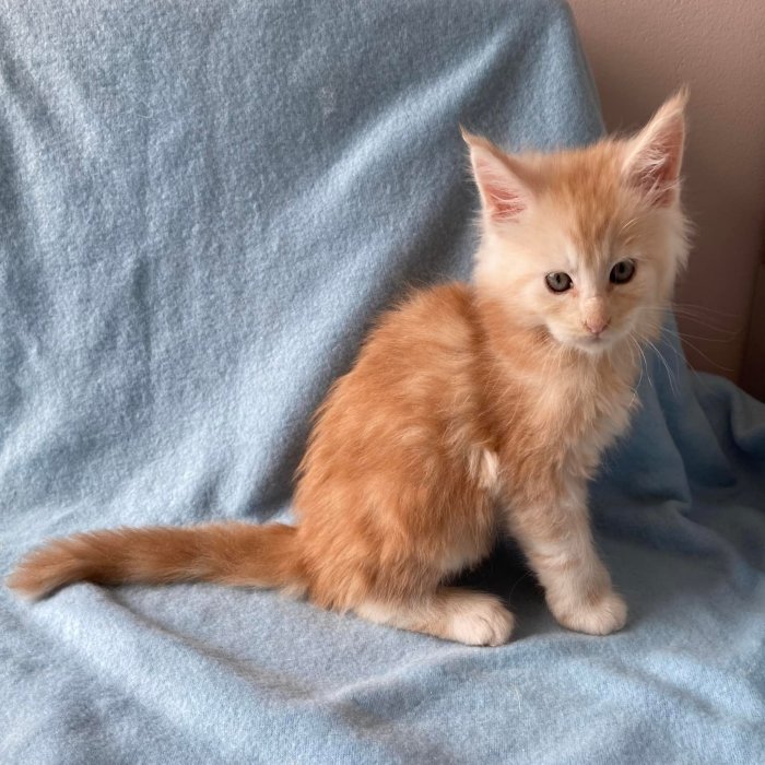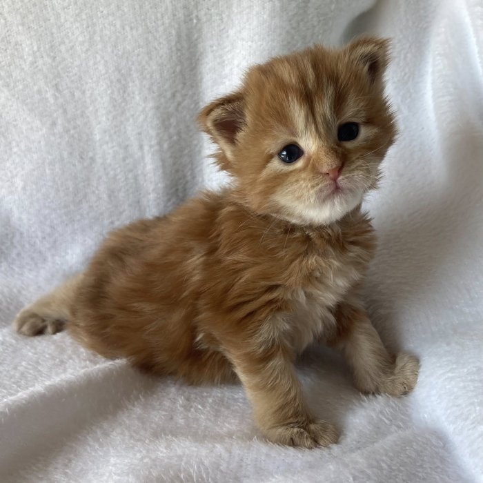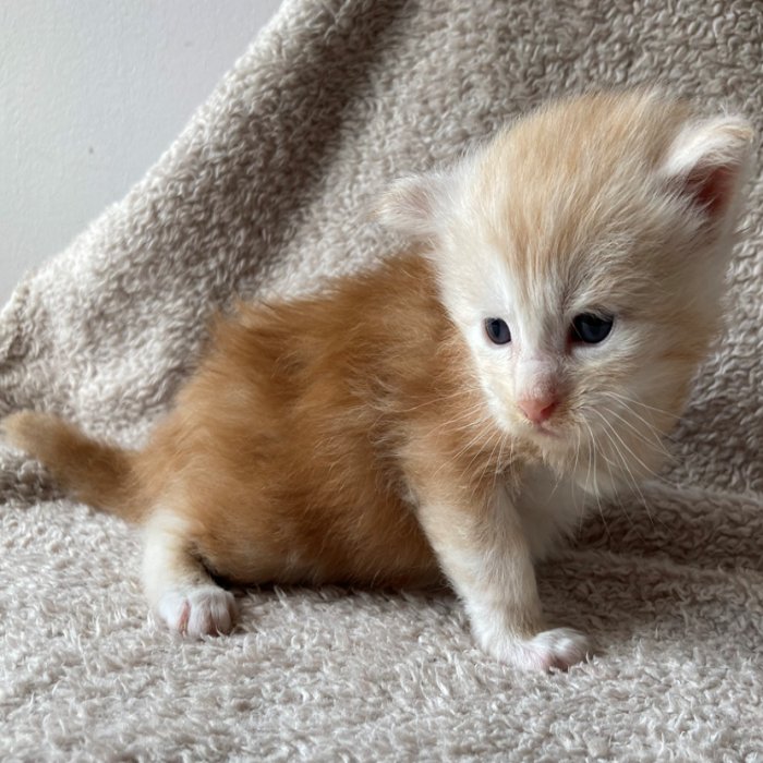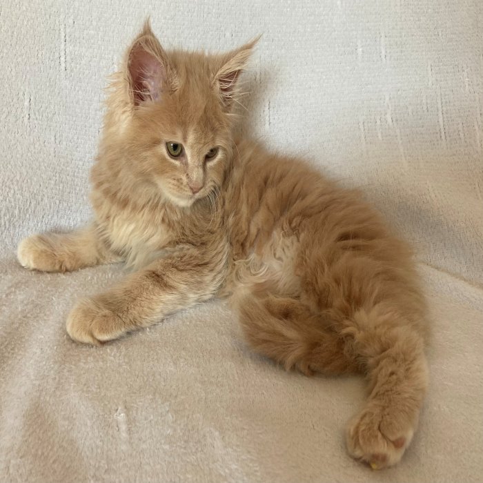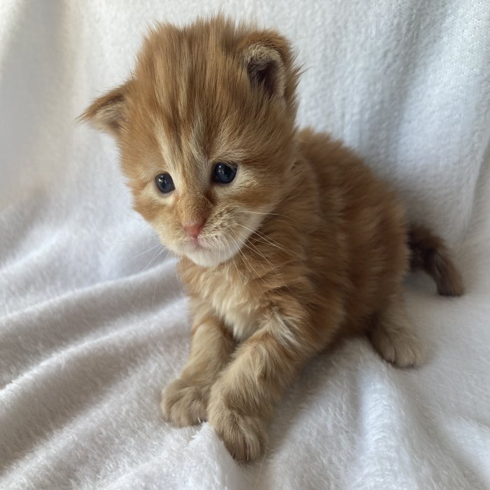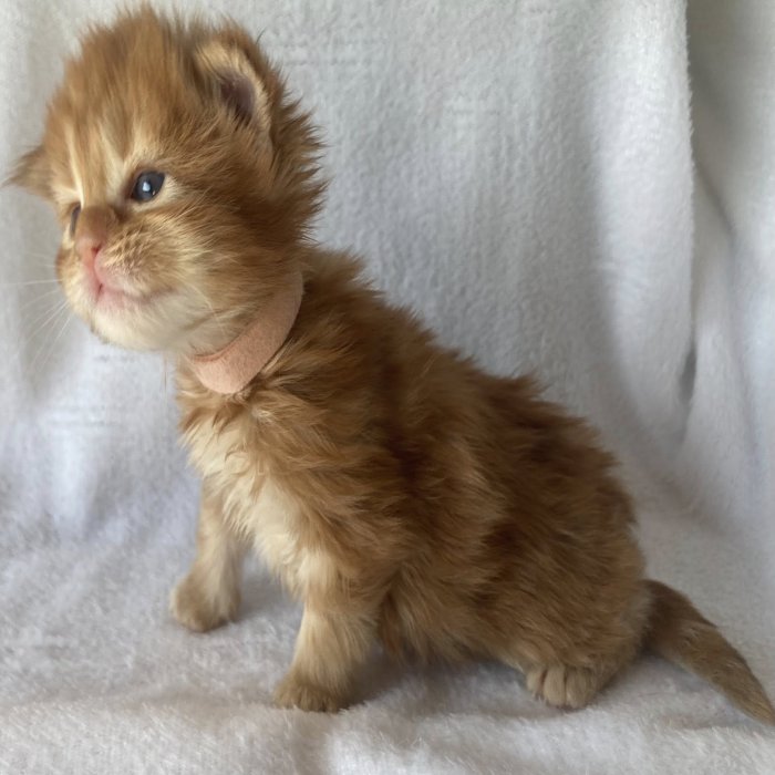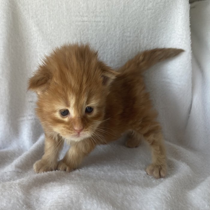 Couleur : Red Solide Mâle Réside à Arlon Couleur : Crême Blotched Tabby Mâle Reste à la chatterie |