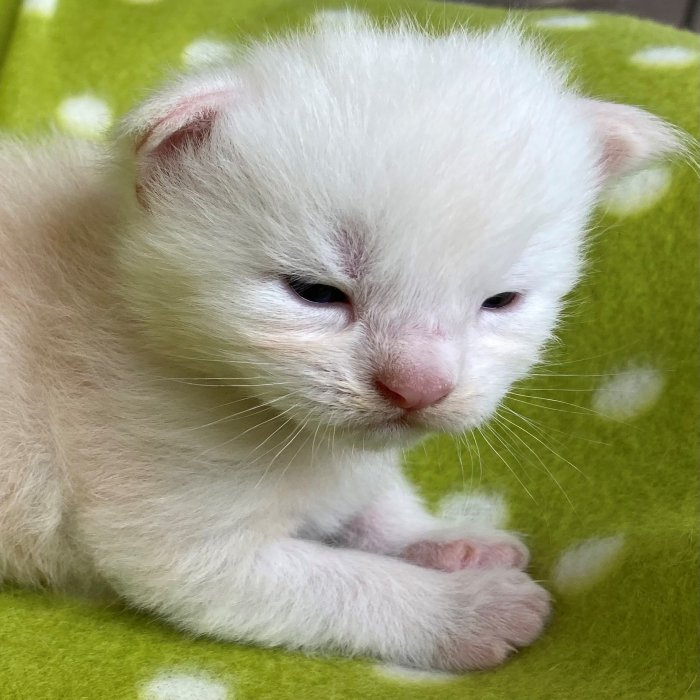 Couleur : Blanche Femelle Reste à la chatterie |